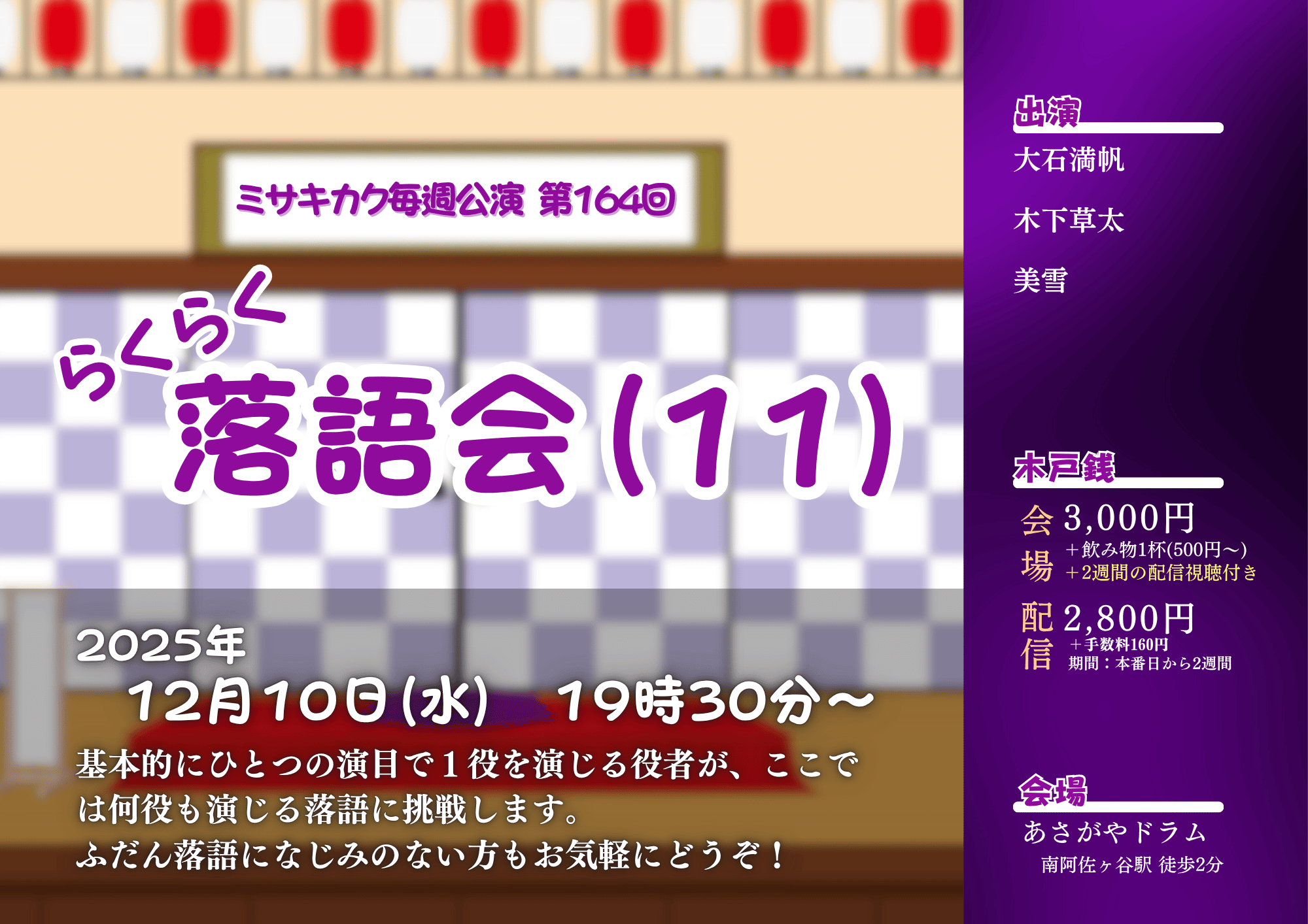 『コロナ禍でも中止にしない、中止になっても以降の上演回に影響しない公演』を目指して始めた毎週公演。