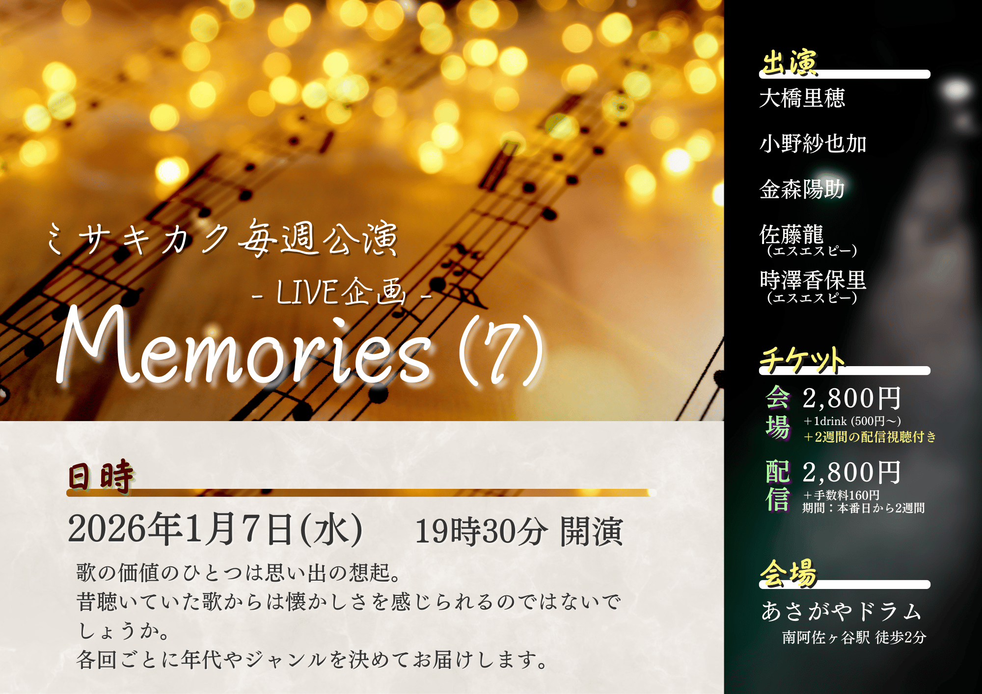 ※終演時刻は21時を予定していますが、前後する可能性があります。予めご了承ください。